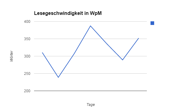 Tja und wie es manchmal so ist, war auch Tag 8 nicht erfolgreicher als Tag 7. Vanessa hat statt angesetzten 70 Minuten nur 30 Minuten geschafft. Auch ihre Lesegeschwindigkeit ist sehr in den Keller gesunken mit 183,33 WpM. Leider also wieder ein Flop-Tag. Aber wir hoffen das Beste und drücken Vanessa alle auffindbaren Daumen, dass es mit der Müdigkeit und dem Lese-Spaß bald wieder vorwärts geht.